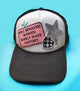 Trucker hat with floral and checkered patches