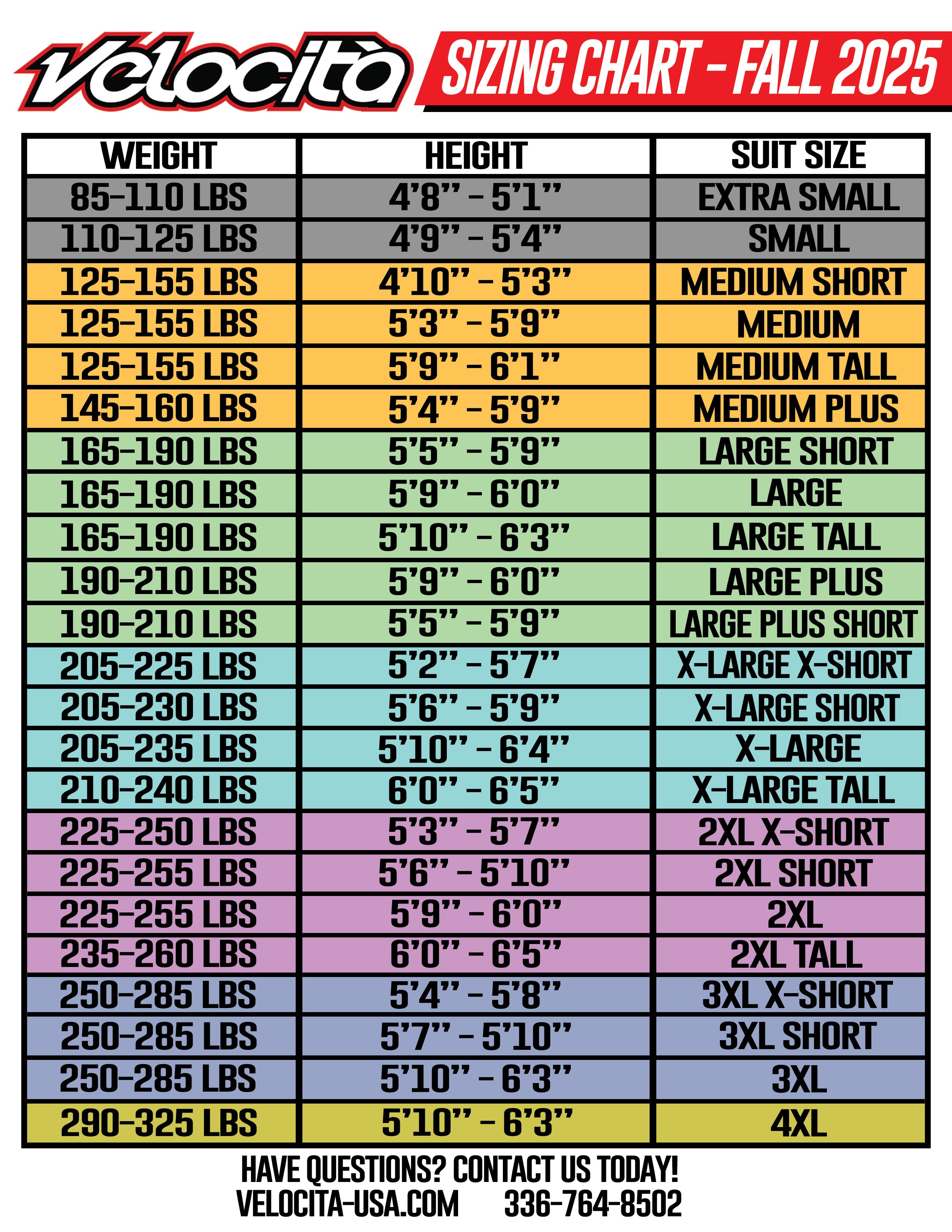 Following the instructions below will help ensure that your Velocita apparel items will fit and feel perfect.