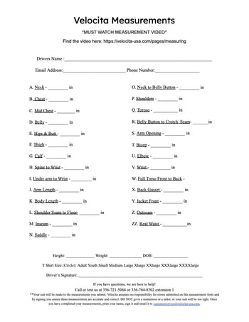 Following the instructions below will help ensure that your Velocita apparel items will fit and feel perfect.